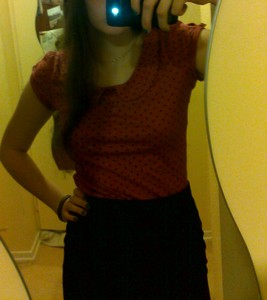 La tenue (mais avec les cheveux lisses et sans le béret)Nadja;1930204 a dit :Pour moi ce sera un haut rouge à pois noirs (avec un col claudine), une jupe crayon noire, des escarpins noirs avec un n?ud devant et un béret de côté. Le tout avec les cheveux un peu ondulés avec mon maquillage habituel : un trait d'eyeliner et du rouge à lèvres rouge vif.